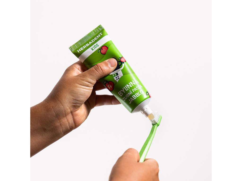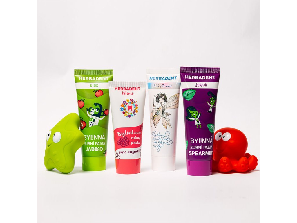 HERBADENT KIDS Herbal toothpaste for children from three years of age with a new flavour Apple.